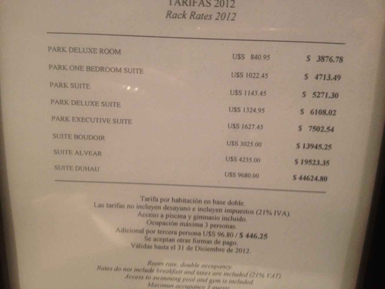 Adding in tips, we spent about $270 for seven nights at some of the finest hotels in the world.