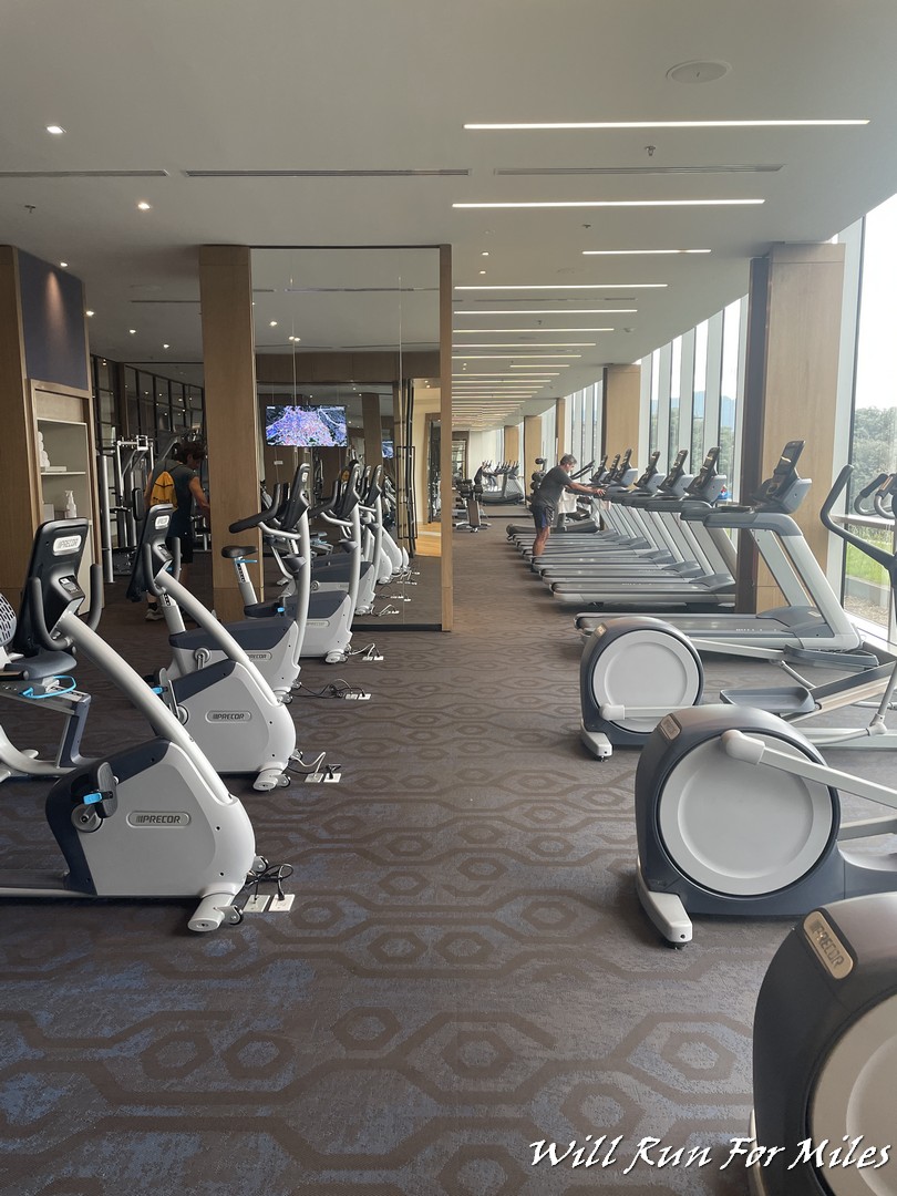 I really liked the hotel fitness center. It was large and clean. The equipment was state of the art and in kept in good working condition. Plus, I really like a gym with a view rather than one pushed into a basement corner. This gym had a wonderful view! And the carpet was very cool too.