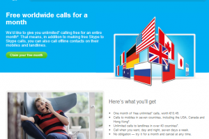 According to the Terms and Conditions, the trial offer must be redeemed by November 15, 2012, and it is only available only to existing Skype users who have been registered with Skype more than 29 days. The offer requires payment details, and you can cancel within 27 days of the start date if you do not want account to be automatically renewed.