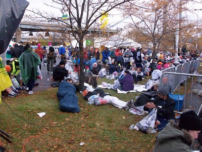 | Before the NYC Marathon (lots of throwaway clothes – fear not, discarded clothing gets collected and given to charity) |